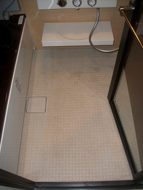 浴室全体。浴槽のフタに一旦腰かけて、楽に浴槽へはいることもできます。