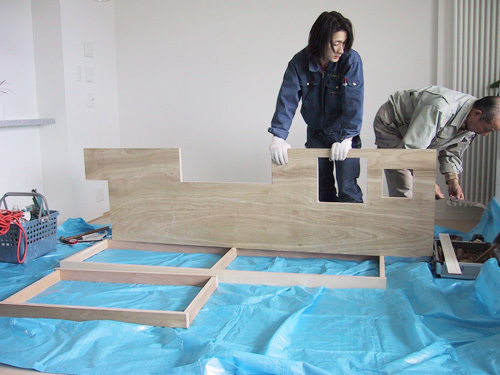 新築マンションの造作工事のご紹介。インテリアはポイントから繋げていくと統一感が出てくる事をご存知の奥様でヨーロピアン調のダイニングテーブルをお持ちでしたので、シャンデリアはアイアンアンティークを選ばれました。蛍光灯の照明はなくダウンライトで空間を演出。壁面が白いクロスで施工された4mと大きな空間に造作家具を作成したいとご依頼を頂き、イメージを伺い 図面を作成。マンションは凹凸がある壁天井なのでそこを綺麗に隠しつつ家具が美しく見えるデザインというご希望でした。収納される内容を伺いながら進めて参ります。取手をつけず加工で手が入るようになっています。