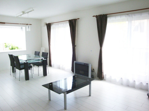 照明器具・カーテン・家具のご要望も合わせてコーディネートさせて頂きました。わんちゃんも出入り出来るドアに満足げだそうです。