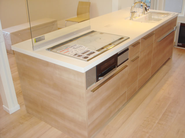 以前のキッチンもオープンタイプでカウンター式だったのですが、生活している時間の中で収納が少なく改善したいというご要望があり収納量たっぷりのキッチンスペースとなりました。