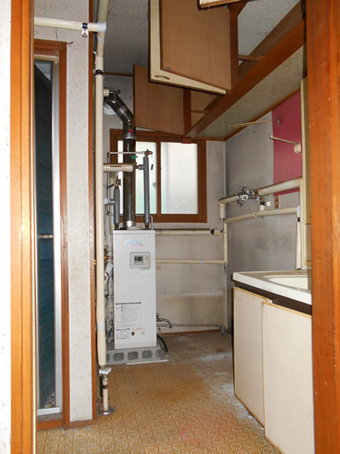寝室から行ける洗面所にもう1ヶ所広いトイレを新設しました。ボイラーは場所を変えてコンパクトな壁掛け式に変更しました。