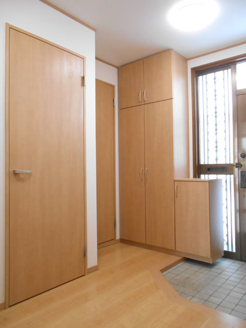 トイレの壁を奥にずらして玄関収納のスペースを確保しました。