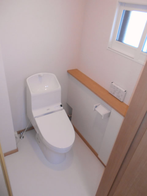 広すぎたトイレは奥行きを詰めて収納カウンターを造作。