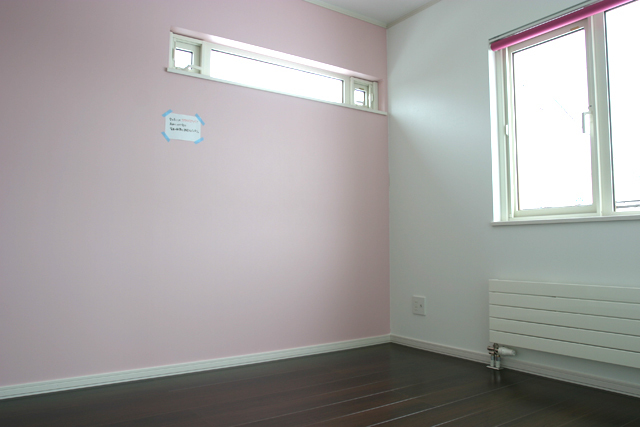 子供部屋:3人のお子様に合わせて、それぞれアクセントの色を変えました。「かわいい!」と思わず言ってしまうようなピンク。寒々しくないラベンダー風のブルー。優しいグリーン。