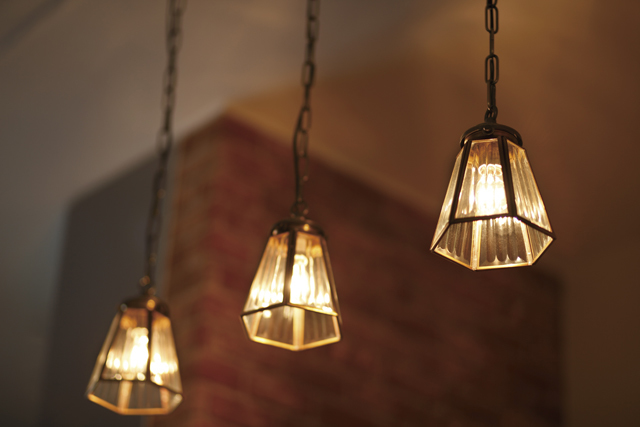 照明: どことなくレトロな ダイニングのガラス照明。 照明: どことなくレトロな ダイニングのガラス照明。