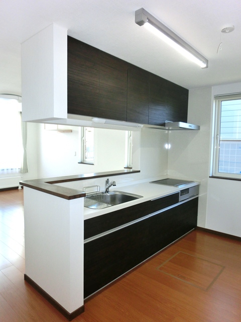 キッチン: 大きな窓からの景色を眺めながら 調理できる対面式キッチン。 キッチン: 大きな窓からの景色を眺めながら 調理できる対面式キッチン。