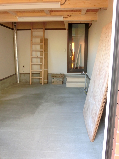 作業場:作業場の室内からの入口はトイレと脱衣所のすぐ近くに。天井裏にはたっぷりの収納も。