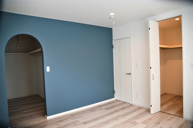 リビングダイニングから2階にあがる階段脇の間仕切りになる収納。たっぷり、見せたくない物を収納できますね。お部屋は、いつもすっきり見せたい!隠したいものがたくさん収納できます。入口をアーチに!ワクワクする、ウオーキングクローゼット。お嬢様のお洋服で、すぐいっぱいになりますね。お嬢さんが、でもね。。。「パパのは、これだけなの。」とご主人専用の収納場所を見せてくれました。(笑) ご家族のにぎやかな、生活が浮かびます。ありがとうございました。