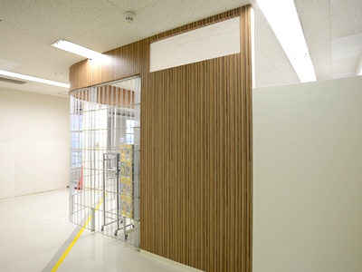 エスカレーターに面する壁は中の様子がわかる透明のアクリル貼り。