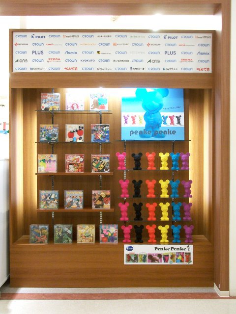 提案コーナー用にオーダーで棚を作成。かわいいグッズが陳列されています。