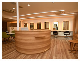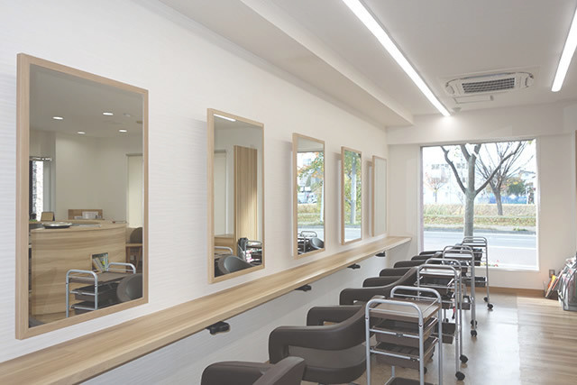 「心が通うおしゃれの空間」をコンセプトに、明るく入りやすいイメージで、スタッフがどこにいても店全体が見渡せる開放的な空間、色調はホワイトをベースにナチュラルなテイストに飽きのこないシンプルで機能的なレイアウトとしてバリアフリー化を実現しました。