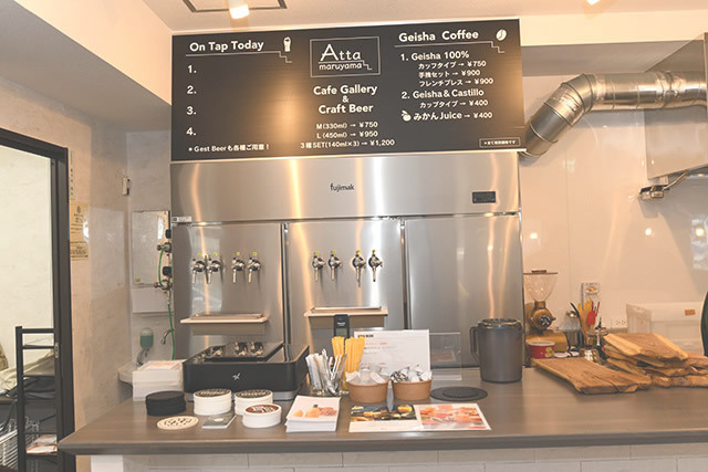 クラフトビールの缶販売、ゲイシャコーヒーのテイクアウトも実施中です。