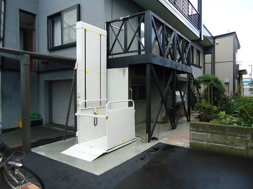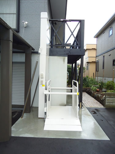 今回はスロープの設置は難しいため、昇降機の設置で問題解決させていただきました。元からあったバルコニーを利用することで、建物の構造を変更せずに設置できました。