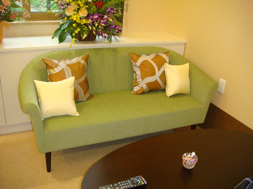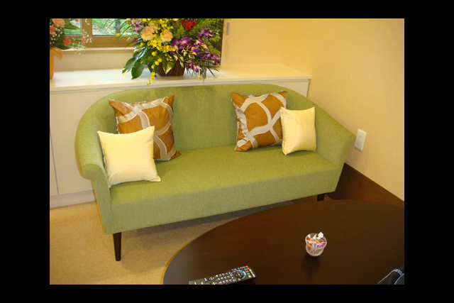 機能訓練室:1階のイメージに合わせたソファとクッション