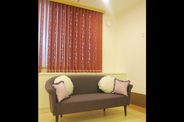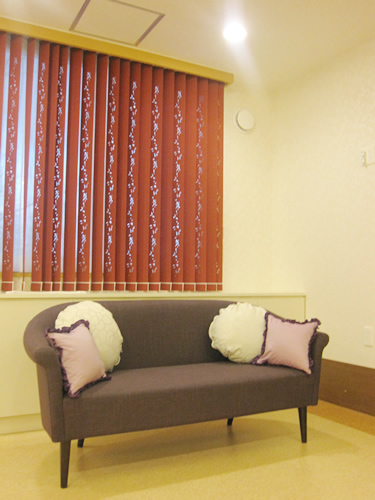 機能訓練室:2階はエレガントなイメージ、バーチカルブラインドは大胆な色に