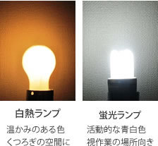 たとえば、ゆったりくつろぎたい寝室は、温かみのある光が特徴的な、白熱ランプがおすすめ。