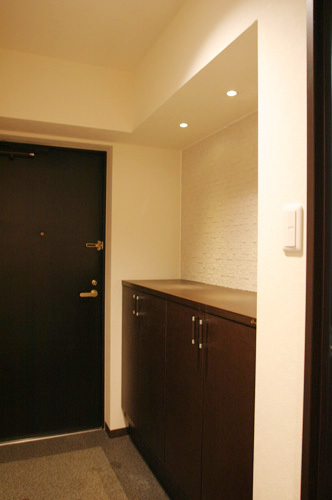 下駄箱上部はエコカラットタイルで壁面を演出。