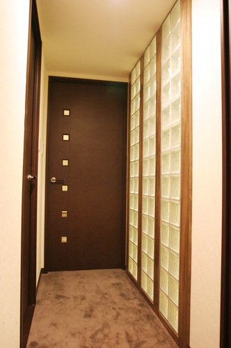 廊下と和室の間仕切りにはガラスブロックを使用。和室からの明かりが、ほんのりと廊下へ灯ります。
