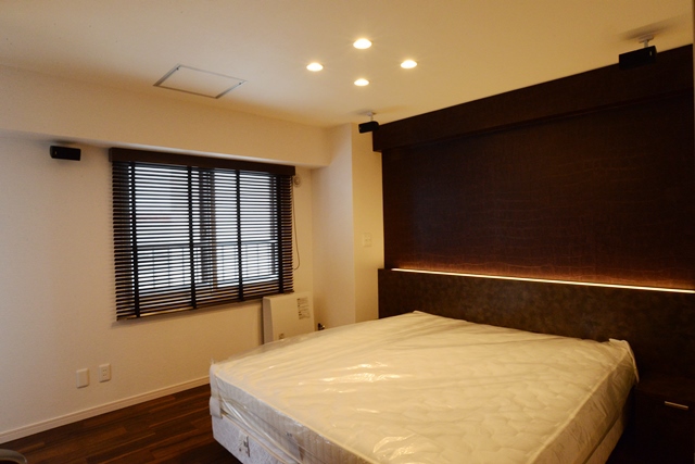 お部屋に合わせてヘッドボードを造作。間接照明の柔らかな光で 心地よい眠りへ誘います。