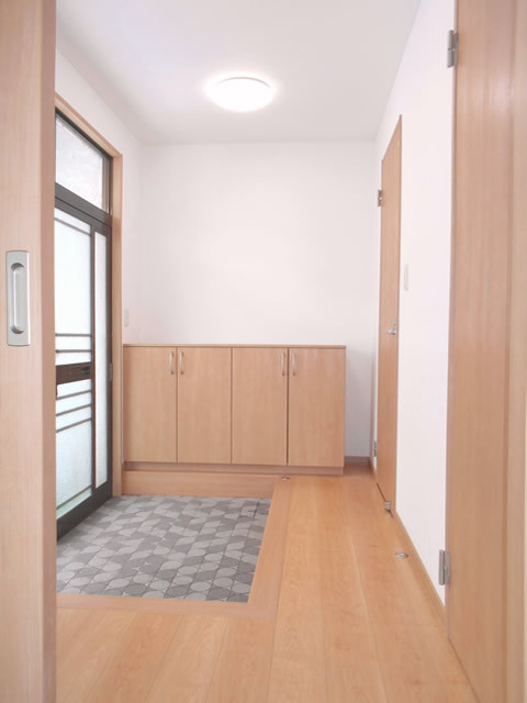 トイレの壁を奥にずらして玄関収納のスペースを確保しました。