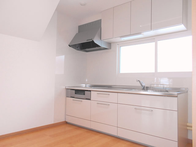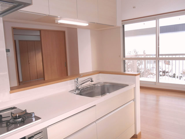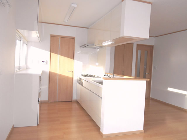キッチンは少しコンパクトに巾225cm。ガスからIHヒーターへ変更。