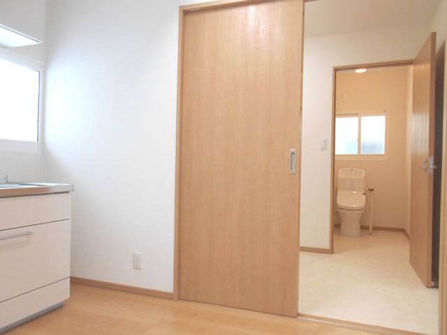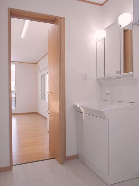 寝室から行ける洗面所にもう1ヶ所広いトイレを新設しました。ボイラーは場所を変えてコンパクトな壁掛け式に変更しました。