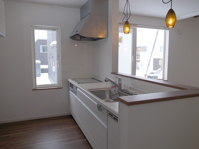 キッチン:オープンスタイル、お子様を見ながら調理