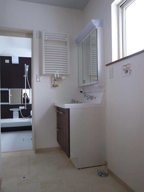 洗面室:タオルを掛けられる暖房完備