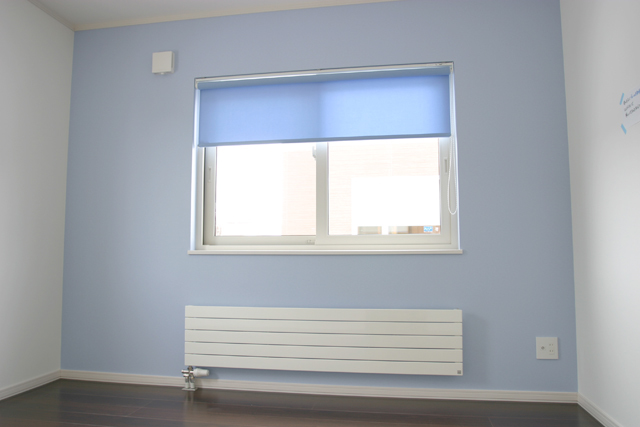 子供部屋:3人のお子様に合わせて、それぞれアクセントの色を変えました。「かわいい!」と思わず言ってしまうようなピンク。寒々しくないラベンダー風のブルー。優しいグリーン。