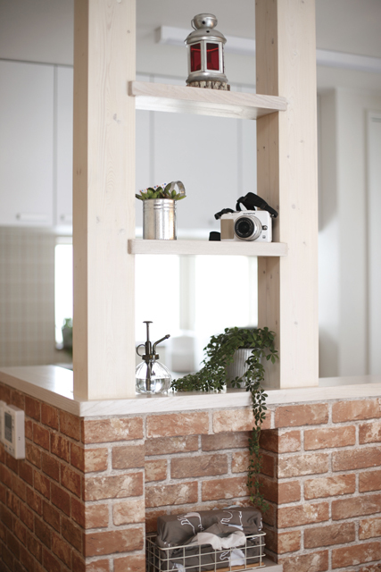 飾り棚: 柱を利用して飾り棚を設置。 飾り棚: 柱を利用して飾り棚を設置。