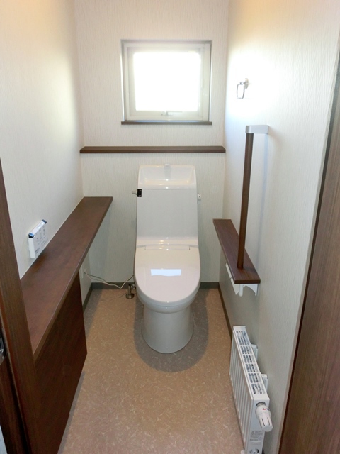 トイレ: 老後も安心して住めるよう、 手すりを取付ました。 トイレ: 老後も安心して住めるよう、 手すりを取付ました。