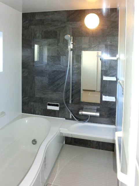 お風呂: モノトーンでシックに まとめたユニットバス。 お風呂: モノトーンでシックに まとめたユニットバス。