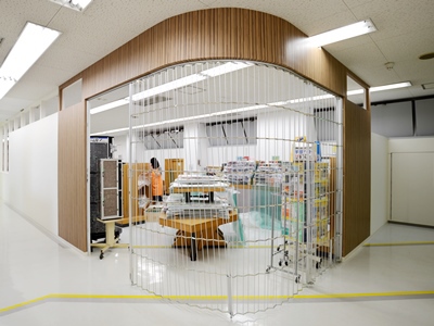 エスカレーターに面する壁は中の様子がわかる透明のアクリル貼り。