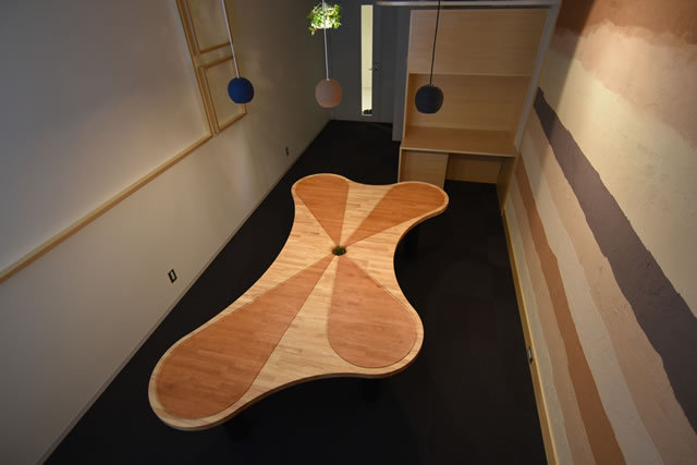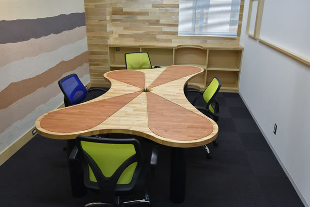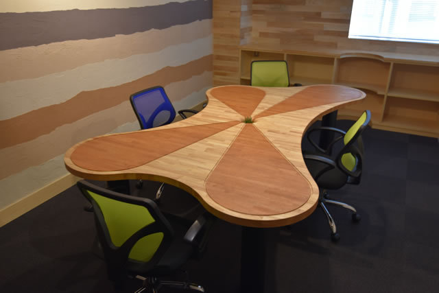 机・・・同じ空間ではたらく人と人の循環をイメージした「互いに向き合わない机」