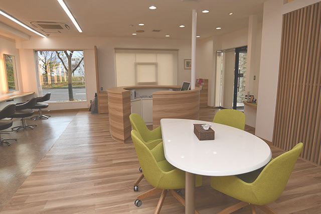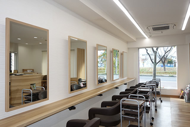 「心が通うおしゃれの空間」をコンセプトに、明るく入りやすいイメージで、スタッフがどこにいても店全体が見渡せる開放的な空間、色調はホワイトをベースにナチュラルなテイストに飽きのこないシンプルで機能的なレイアウトとしてバリアフリー化を実現しました。