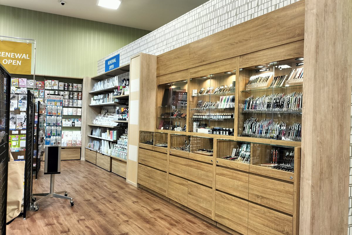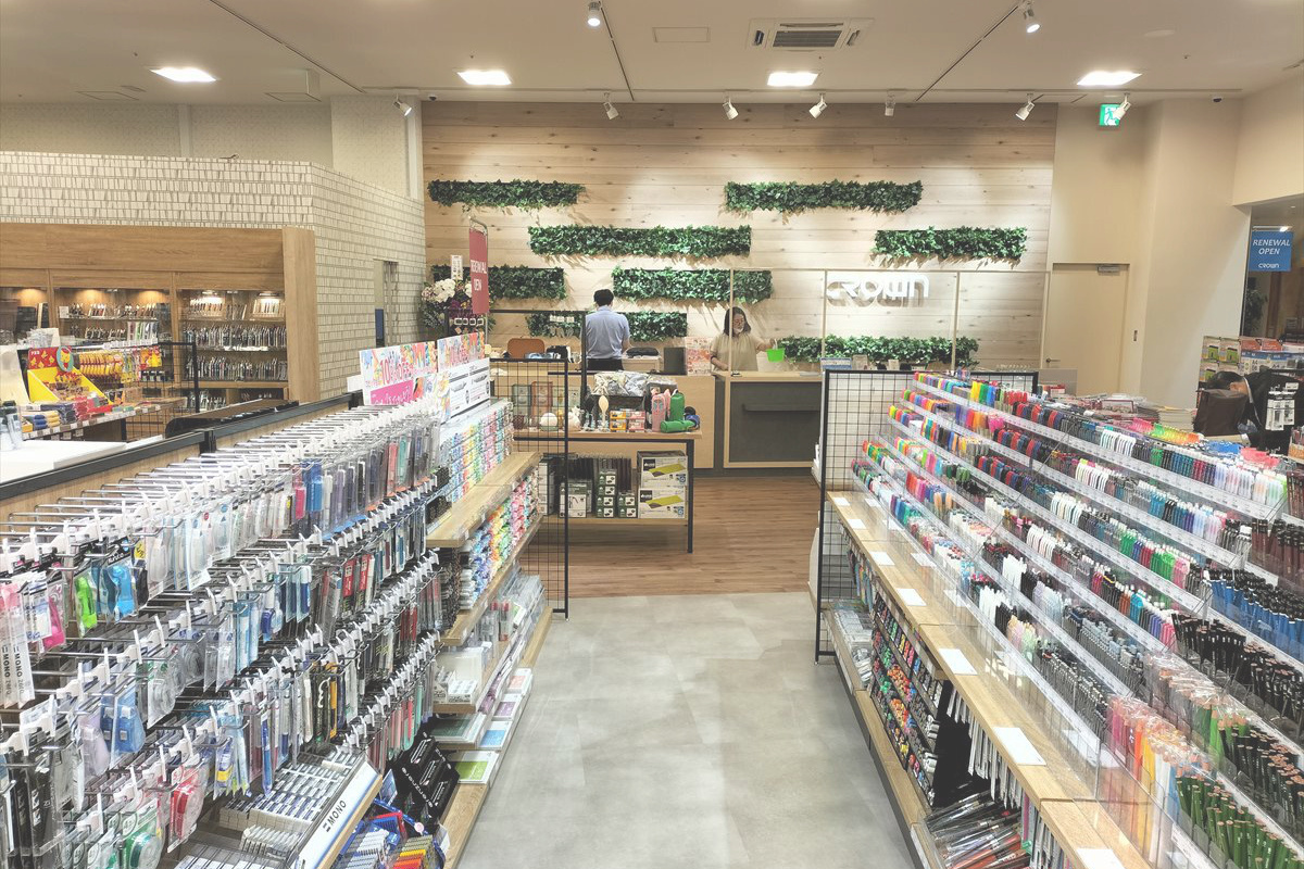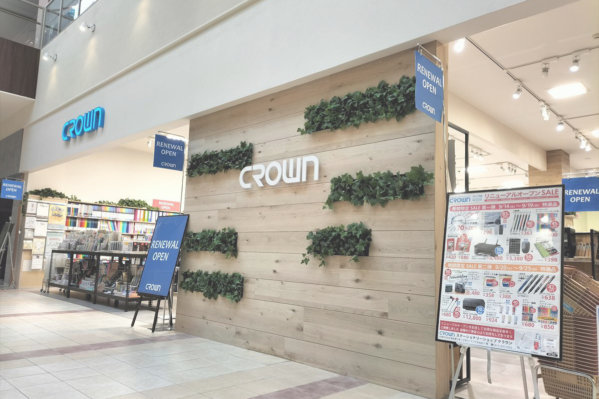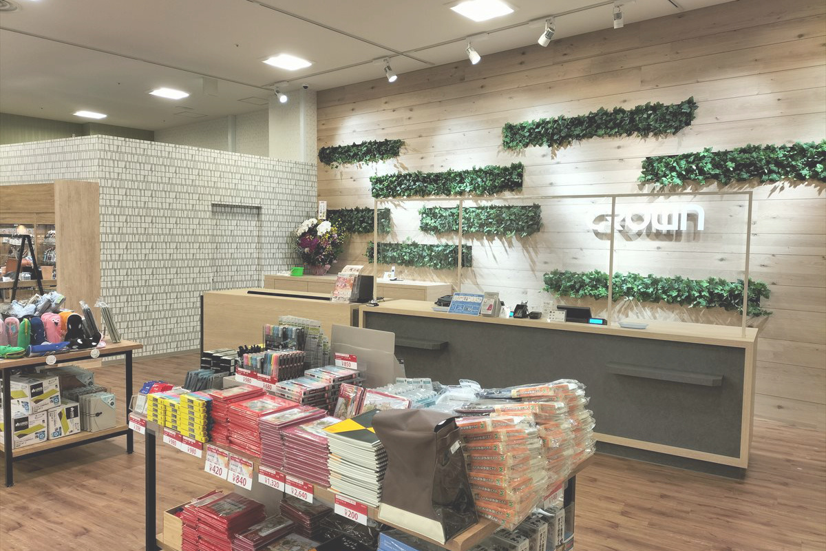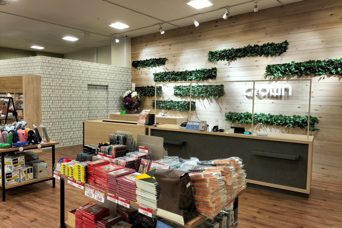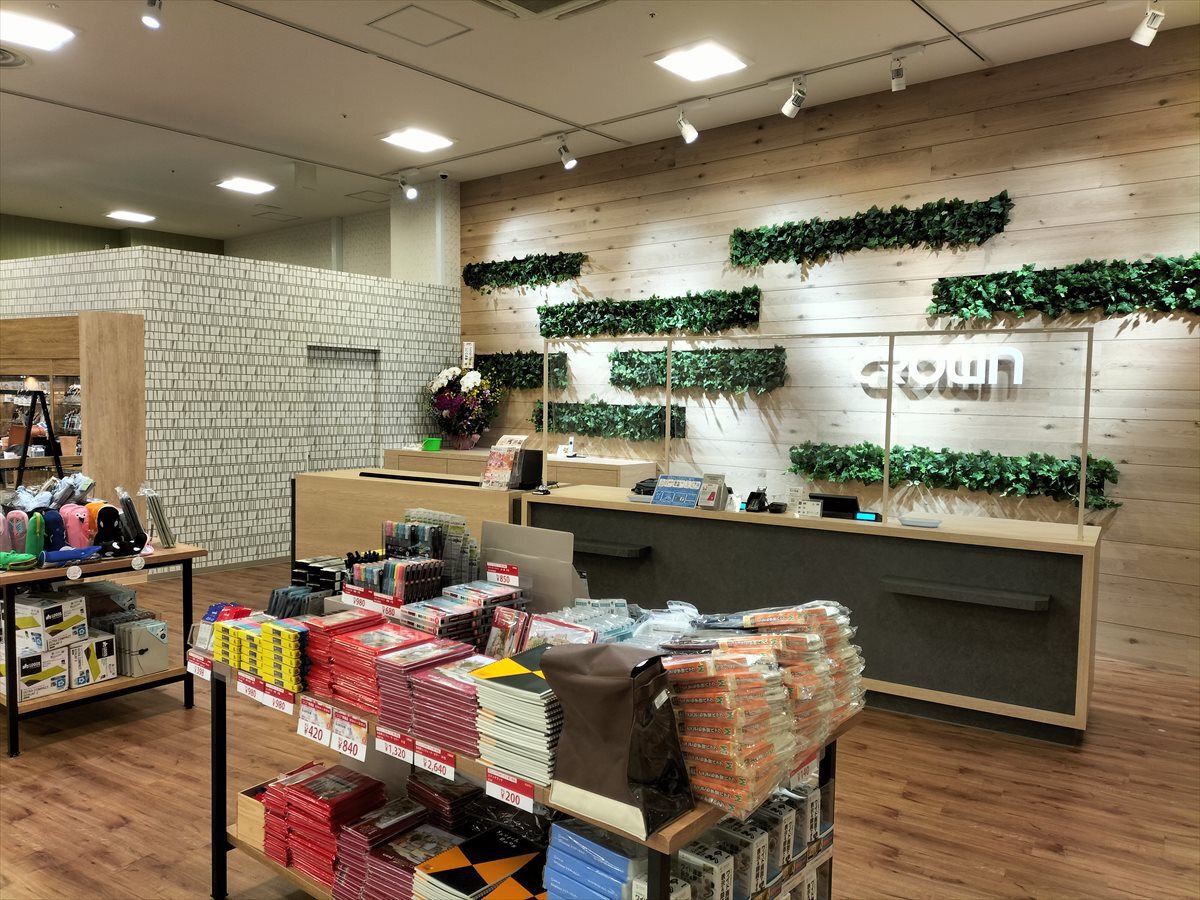 クラウン:ラソラ店は旧施設名イーアス札幌の頃から入店しており、店舗の改装を考えていましたが この度、旧店舗の向いに空きが出来た為、床面積が17坪程広い約87坪の区画に新装移転する事となりました 木材を使いナチュラルで開放的な空間をデザインコンセプトとして 商品アイテムを見直し中央什器の高さを低く抑えています。